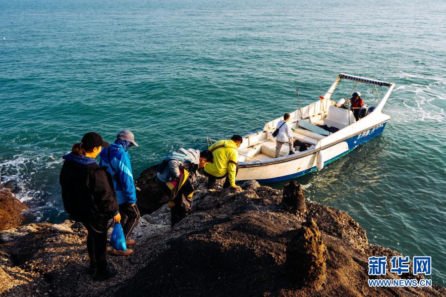 1月14日,考察完斜阳岛的观测点后,陈默带领其他队员乘船离岛。