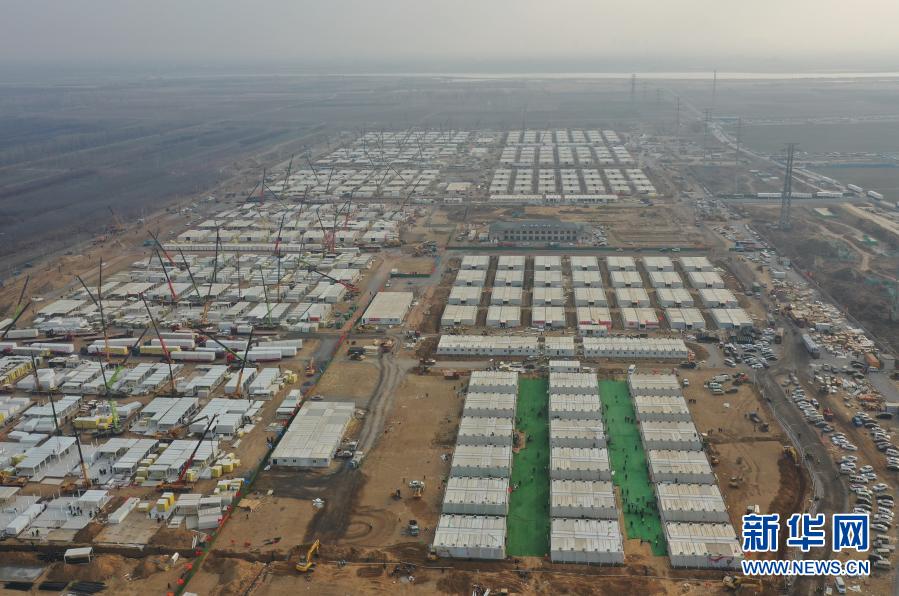 这是1月19日拍摄的石家庄黄庄公寓集中隔离场所工地(无人机照片)。
