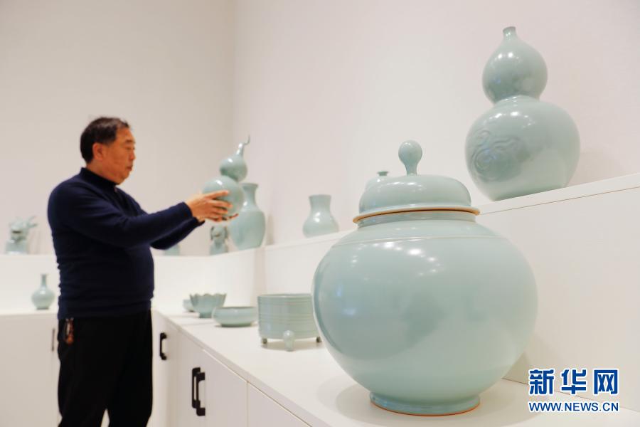 新春佳节临近,有“汝瓷之乡”美誉的河南省宝丰县的汝瓷艺人设计、烧制以生肖牛及节庆摆件为主题的系列汝瓷产品,供应节日市场。
