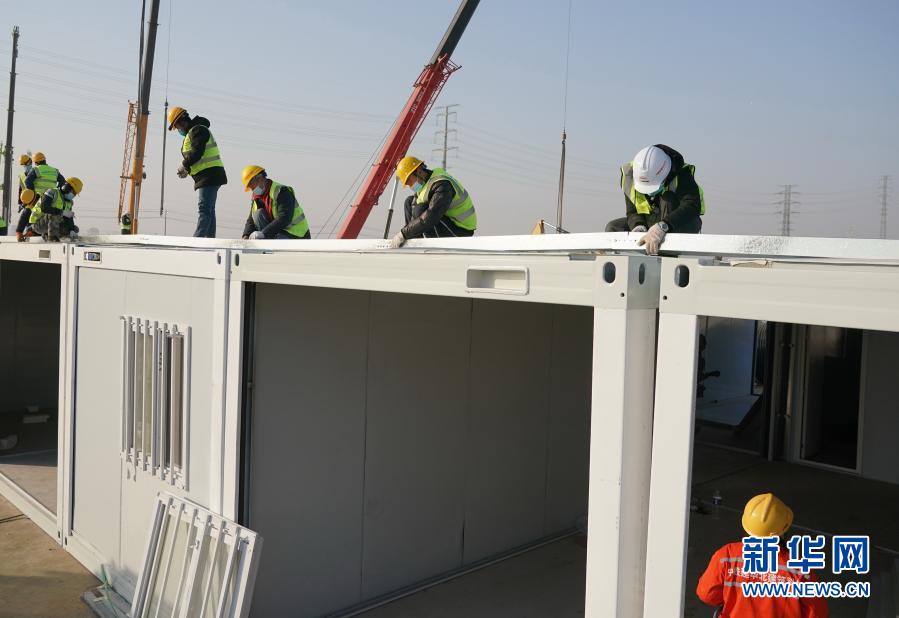 1月18日,工人在石家庄市黄庄公寓隔离场所项目工地施工。新华社记者 杨世尧 摄