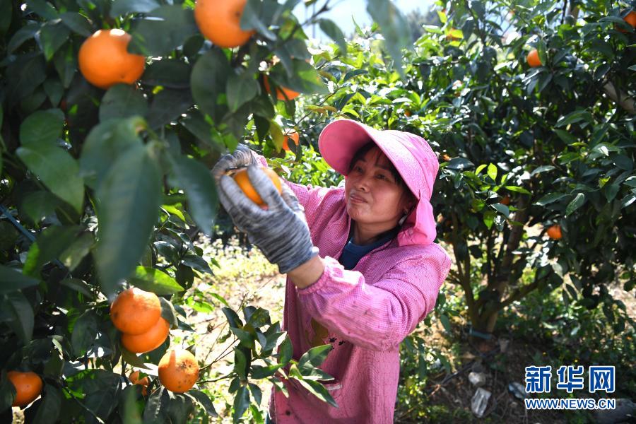 1月19日,村民在广西河池市大化瑶族自治县都阳镇忠武村采摘沃柑。
