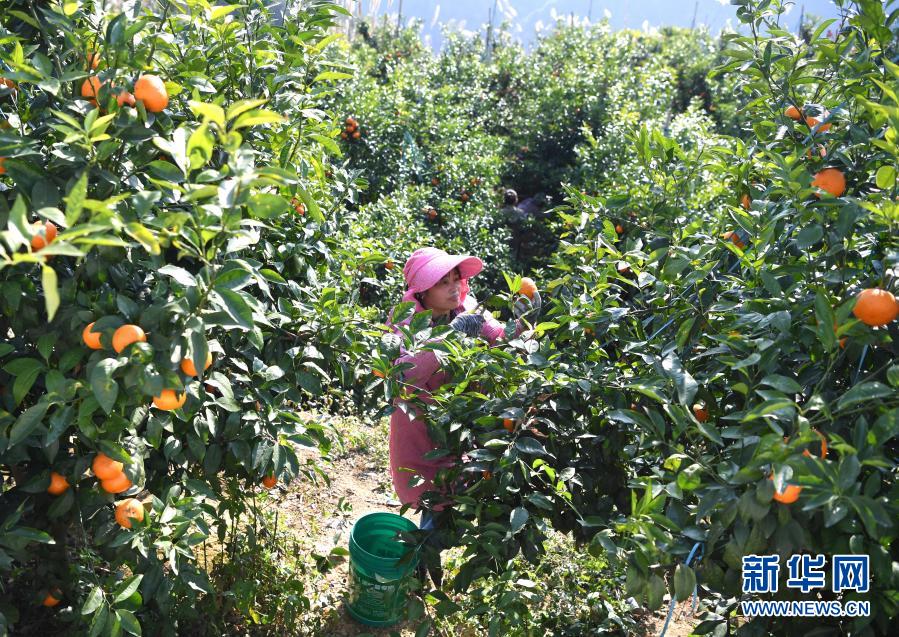 1月19日,村民在广西河池市大化瑶族自治县都阳镇忠武村采摘沃柑。