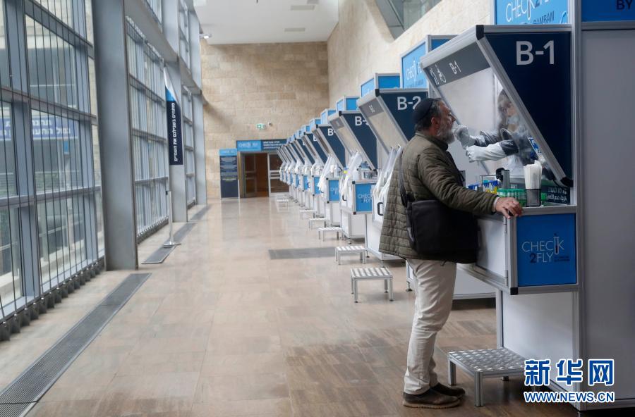 1月19日,在以色列本古里安国际机场,工作人员在快速新冠病毒检测点为旅客进行取样。