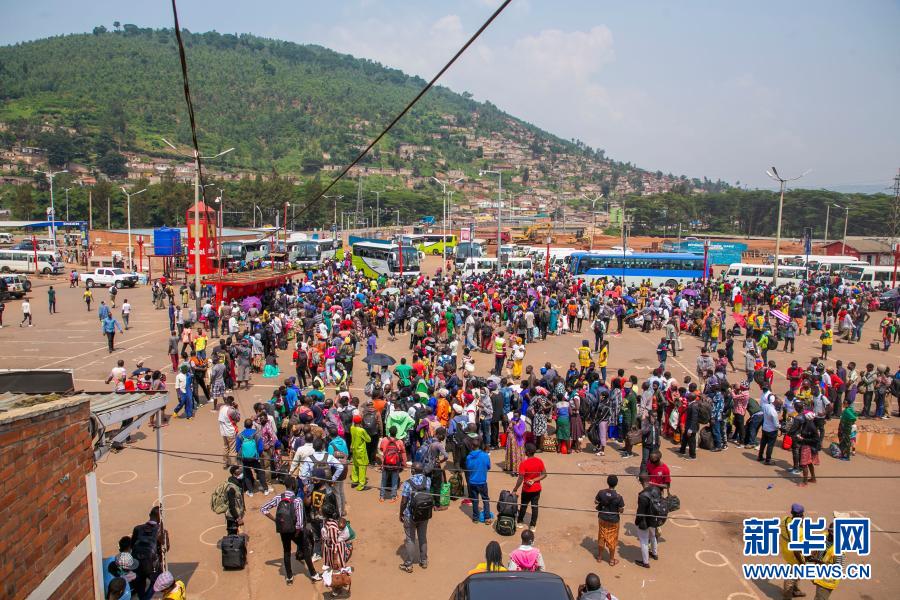 1月19日,在卢旺达首都基加利,人们在“禁足令”实施后准备搭乘长途汽车返乡。