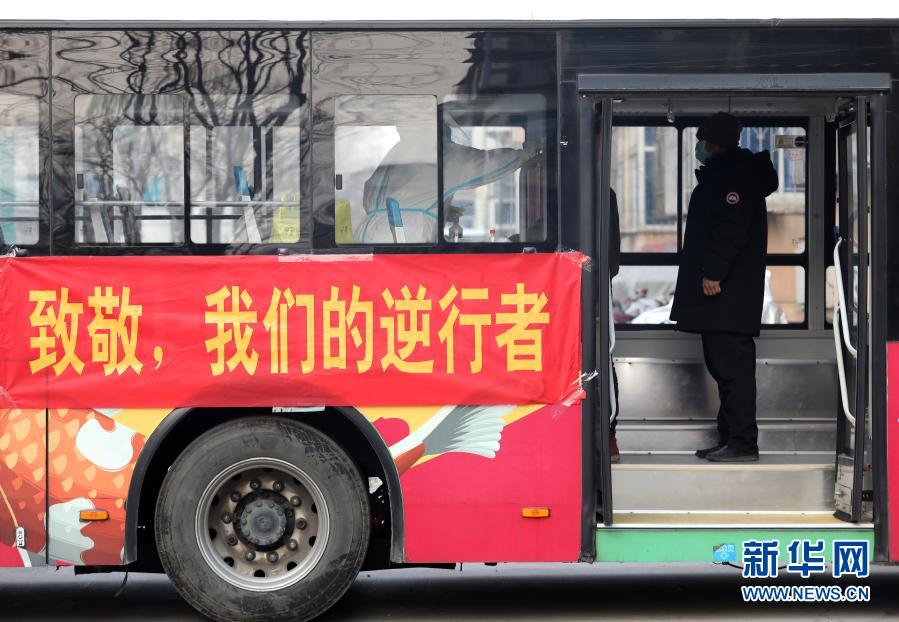 1月20日,在石家庄市新华区党家庄社区公交车流动核酸采样点,医护人员在为居民进行核酸采样。