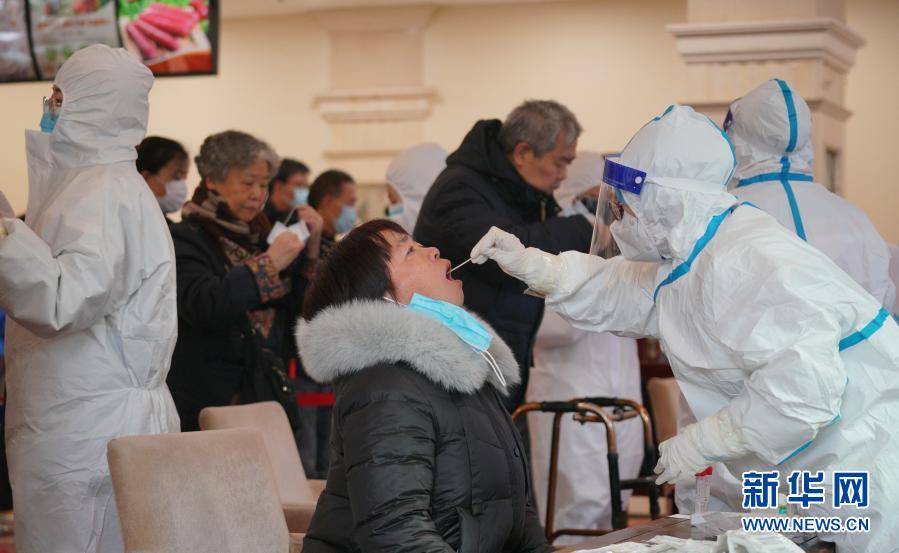 1月20日,石家庄市桥西区恒大城社区居民在接受核酸采样。
