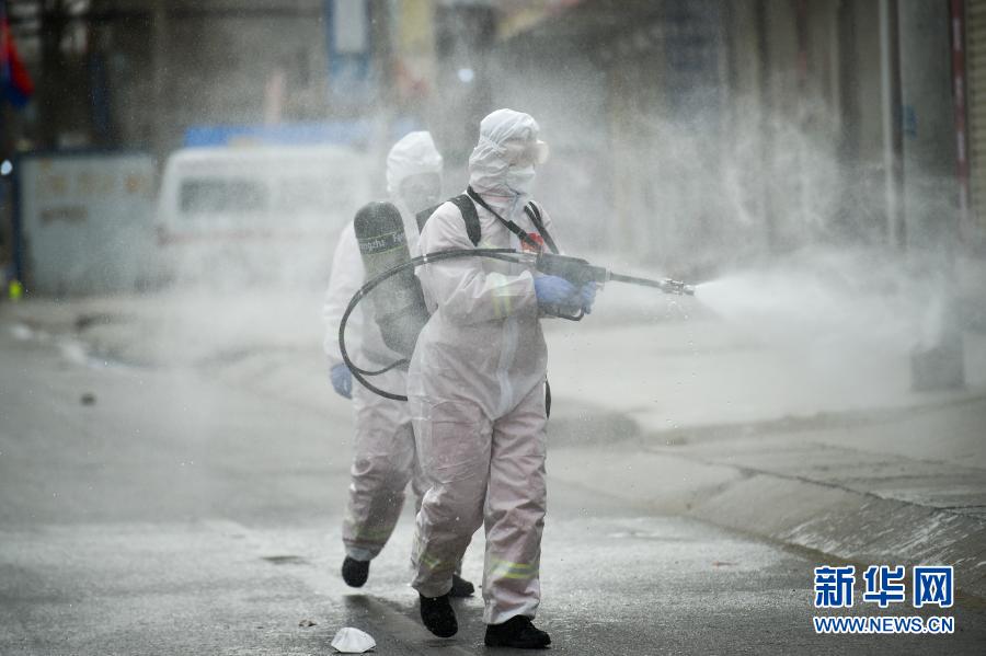 1月15日,在河北省石家庄市藁城区小果庄村,防疫工作人员在进行消杀。新华社发(赵杰 摄)