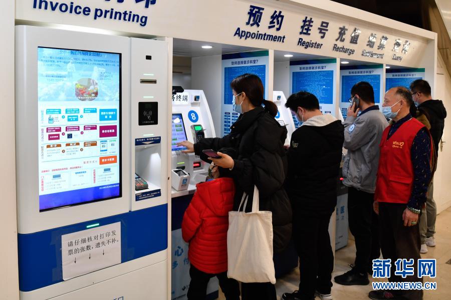 1月20日,群众在杭州市余杭区第一人民医院使用自助服务终端进行挂号等操作。新华社记者 黄宗治 摄