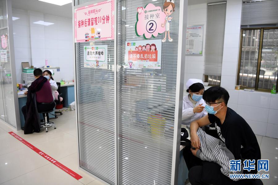 1月20日,在合肥市肥西县上派镇中心卫生院预防接种门诊,医护人员为接种人员注射疫苗。