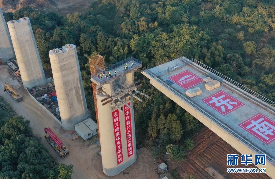 1月21日,转体中的新建福厦铁路九龙江特大桥转体桥(无人机照片)。