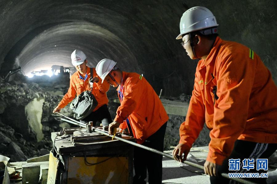 1月21日,施工人员在新云居山隧道内作业。新华社记者 林善传 摄