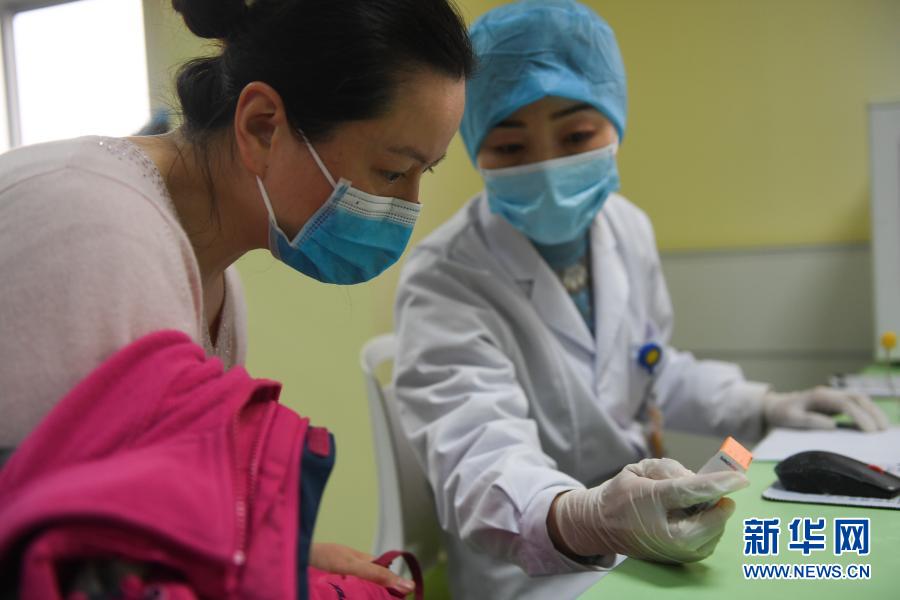 1月21日,在南京市玄武区玄武门社区卫生服务中心,江苏省肿瘤医院的医务人员(左)在接种前查看疫苗信息。新华社记者 季春鹏 摄