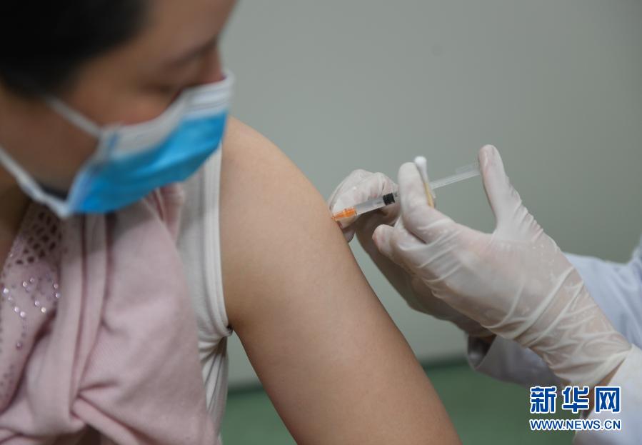 1月21日,在南京市玄武区玄武门社区卫生服务中心,江苏省肿瘤医院的医务人员在接种疫苗。新华社记者 季春鹏 摄