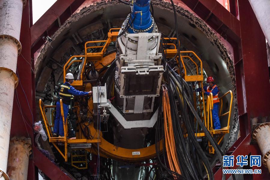 1月21日,中铁上海局技术人员在深圳地铁四期工程14号线共建管廊隧道盾构始发前对盾构机进行检查。