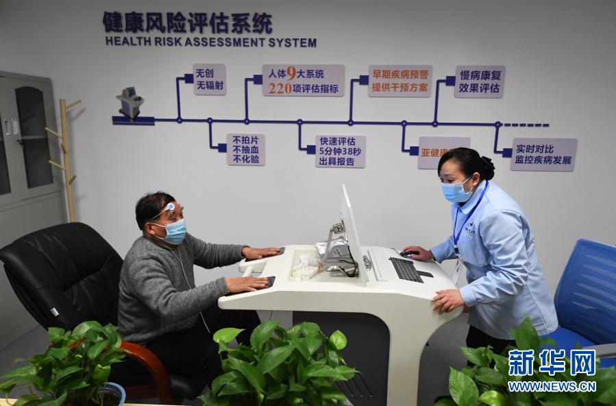 1月21日,一名老人在重庆市渝北区仙桃街道空港佳园社区养老服务站接受健康风险评估。