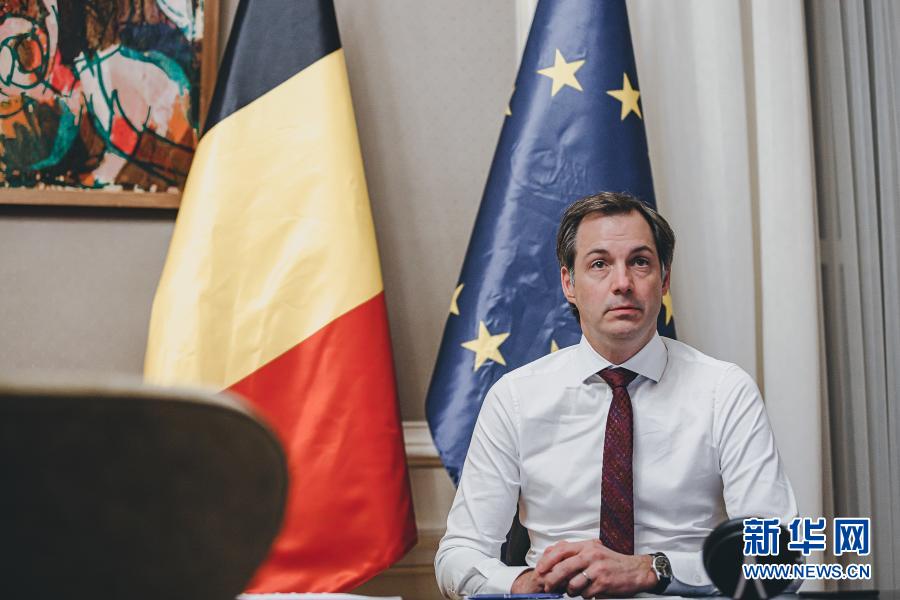 1月21日,比利时首相德克罗参加欧盟领导人视频会议。新华社发(欧盟供图)