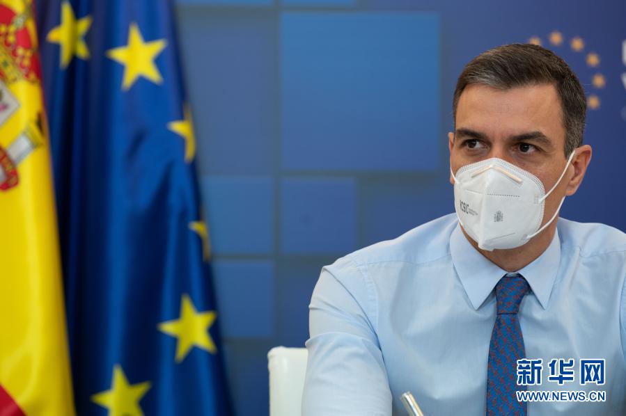 1月21日,西班牙首相桑切斯参加欧盟领导人视频会议。新华社发(欧盟供图)