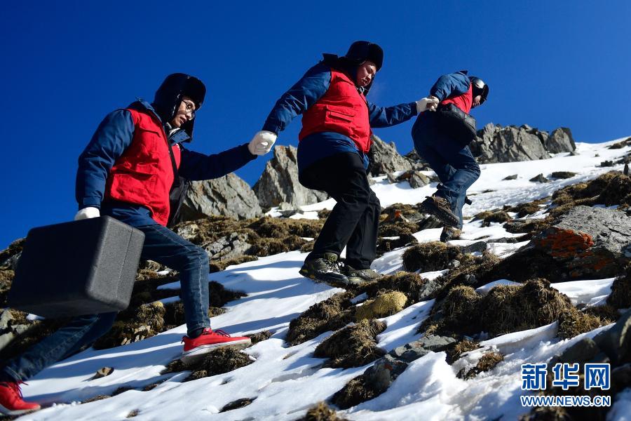 1月21日,国家电网西宁供电公司输电运检中心运检人员在登山巡检。