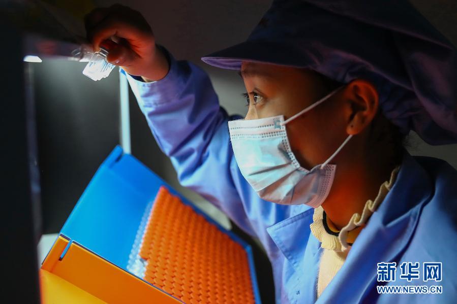 1月6日,科兴中维的工作人员在包装车间对西林瓶包装新冠病毒灭活疫苗进行人工抽检。新华社记者 张玉薇 摄
