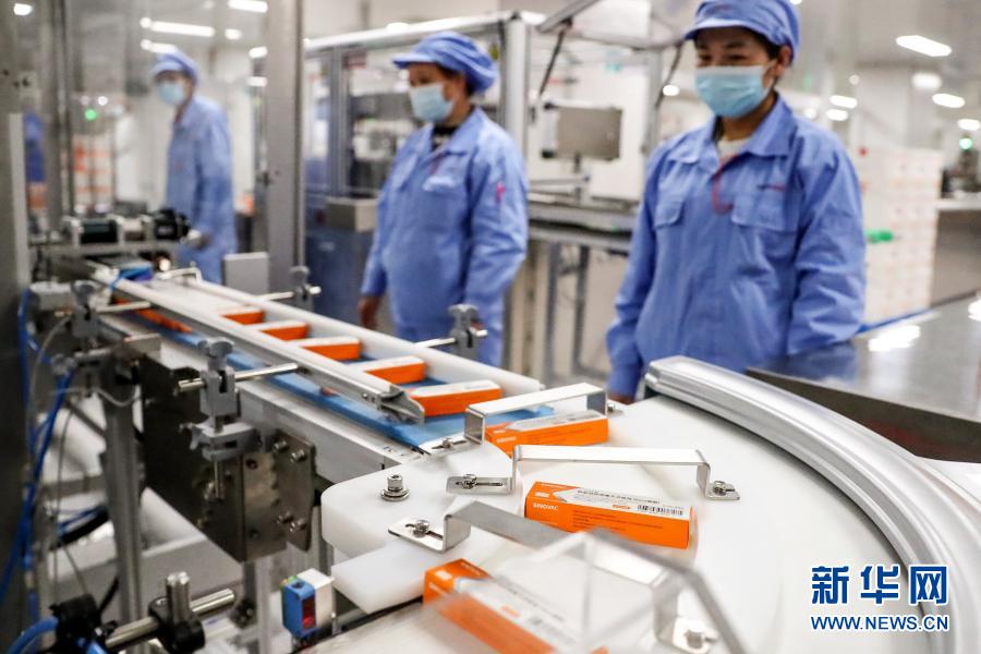 1月6日,科兴中维的工作人员在检查新冠病毒灭活疫苗全自动包装线运行情况。新华社记者 卢烨 摄