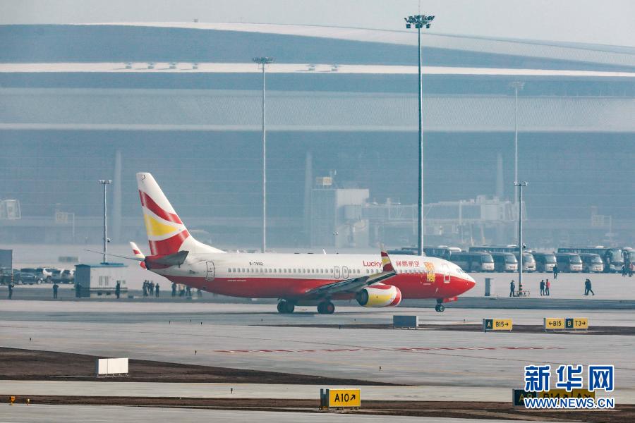1月22日,参加试飞仪式的祥鹏航空的波音B737-800客机降落在天府国际机场。