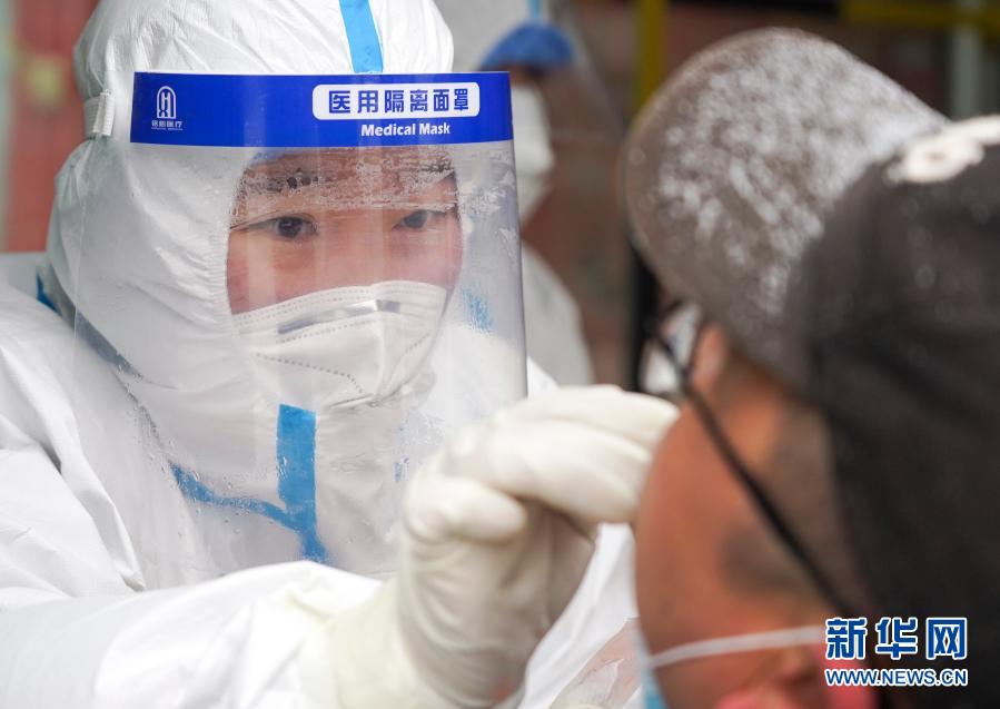 医务人员在通化市东昌区一核酸检测点采样(1月20日摄)。