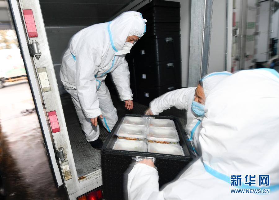 通化市一家餐饮企业员工为一线防疫人员提供餐饮配送(1月21日摄)。