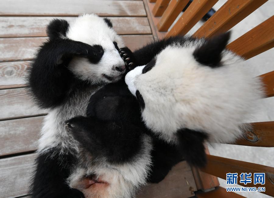 1月22日,大熊猫幼崽在陕西秦岭大熊猫研究中心活动。
