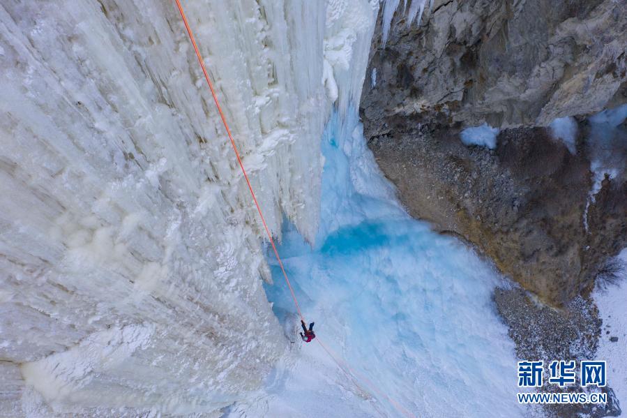 黄煌完成先锋攀爬后,下降回到地面(1月12日摄,无人机照片)。新华社记者 胡虎虎 摄
