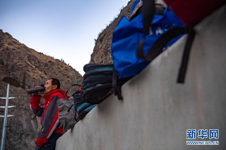 黄煌在结束攀冰后休息(1月12日摄)。新华社记者 胡虎虎 摄