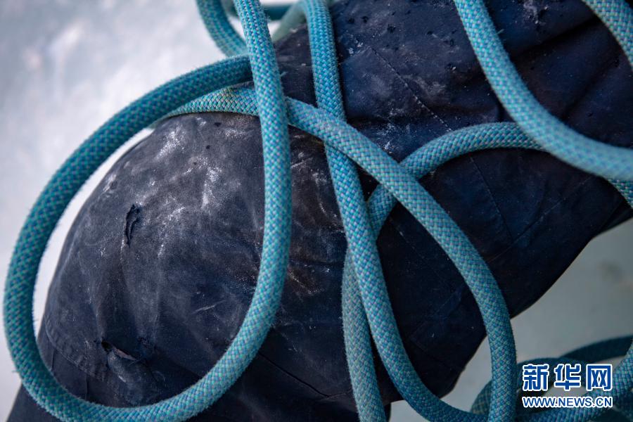 这是黄煌在攀冰时所穿的裤子(1月12日摄)。新华社记者 胡虎虎 摄