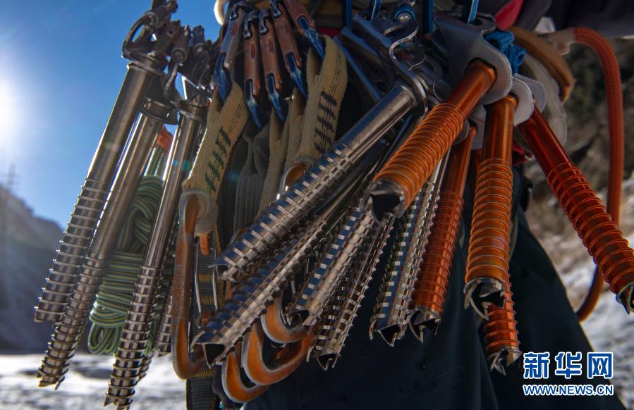 这是黄煌随身携带的冰锥、快挂等攀冰用具(1月16日摄)。新华社记者 胡虎虎 摄
