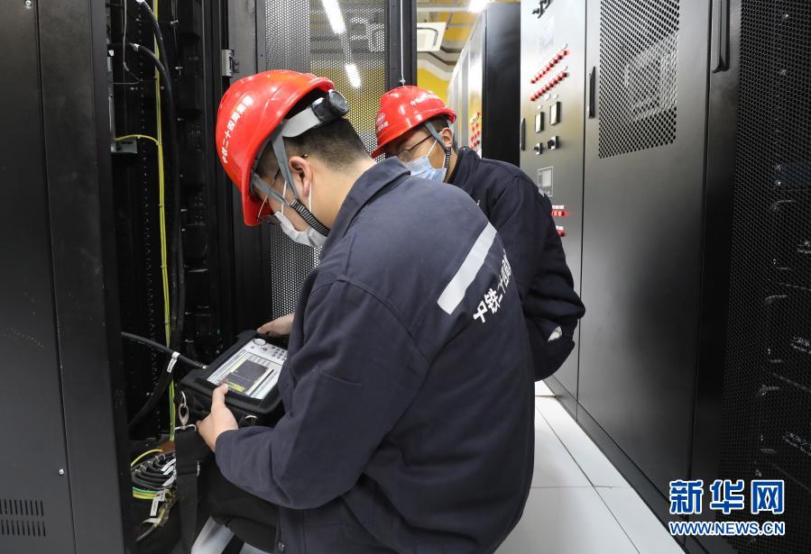 1月22日,技术人员在15号线大渡河路站弱电综合机房内,使用仪器监测列车通信系统运行情况。