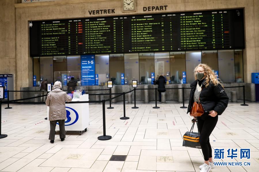 1月22日,乘客在比利时布鲁塞尔中央火车站准备乘车。新华社记者 张铖 摄