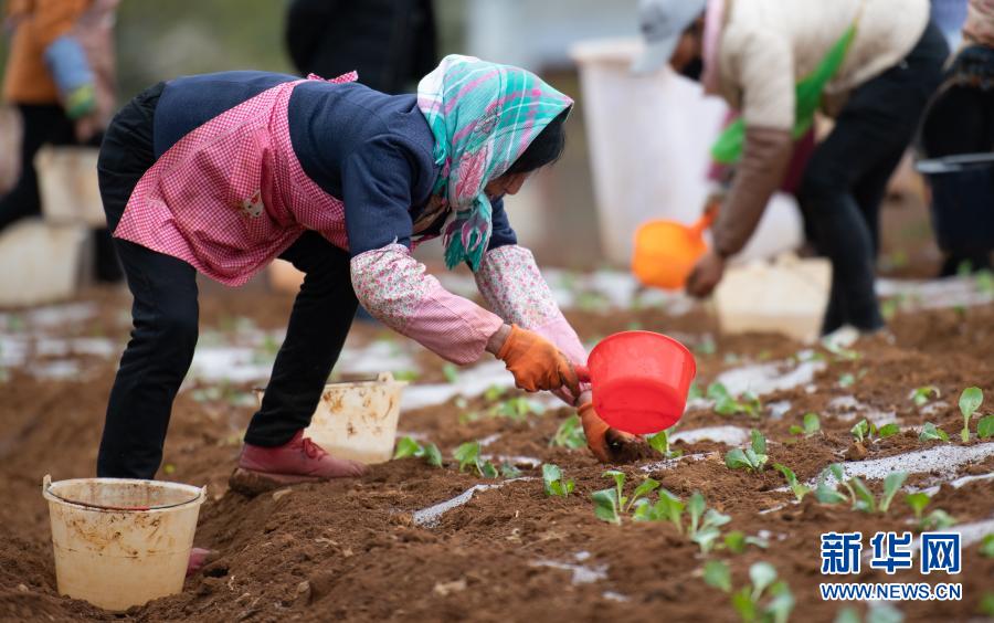 毕节市威宁彝族回族苗族自治县双龙镇红光村村民在田间劳作(2020年4月23日摄)。新华社记者 陶亮 摄