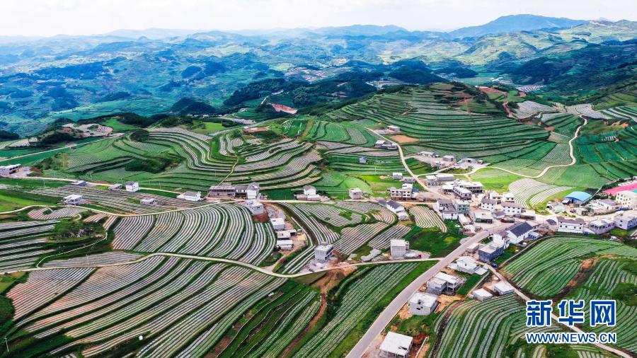 毕节市威宁彝族回族苗族自治县双龙镇的高山冷凉蔬菜产业基地(2020年6月17日摄,无人机照片)。新华社记者 杨文斌 摄