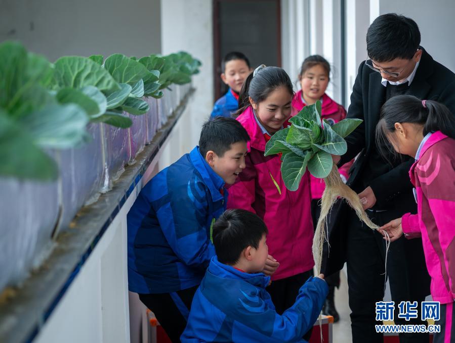 1月22日,高溪小学的学生们在老师的带领下在教学楼走廊上观察成熟的蔬菜及根须。学生们在两个多月的时间中完整参与了从幼苗萌发到蔬菜生长、移栽、防治病虫害的全过程,并且还将自己的所见所闻、所做所感以观察日记的形式逐一记录。
