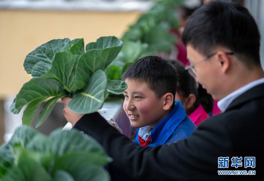 1月22日,高溪小学的学生们在老师的带领下在教学楼走廊上观察成熟的蔬菜及根须。学生们在两个多月的时间中完整参与了从幼苗萌发到蔬菜生长、移栽、防治病虫害的全过程,并且还将自己的所见所闻、所做所感以观察日记的形式逐一记录。