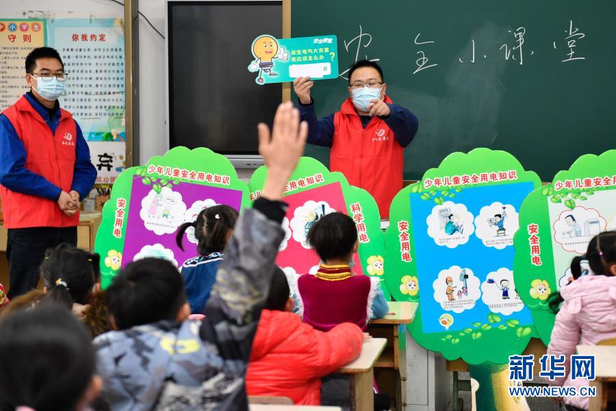 在寒假来临前,针对今年春节“就地过年”的趋势,浙江宁波奉化区小草志愿服务队来到外来务工人员子女集中就读的育才学校,为小学生带来一堂寒假安全课。