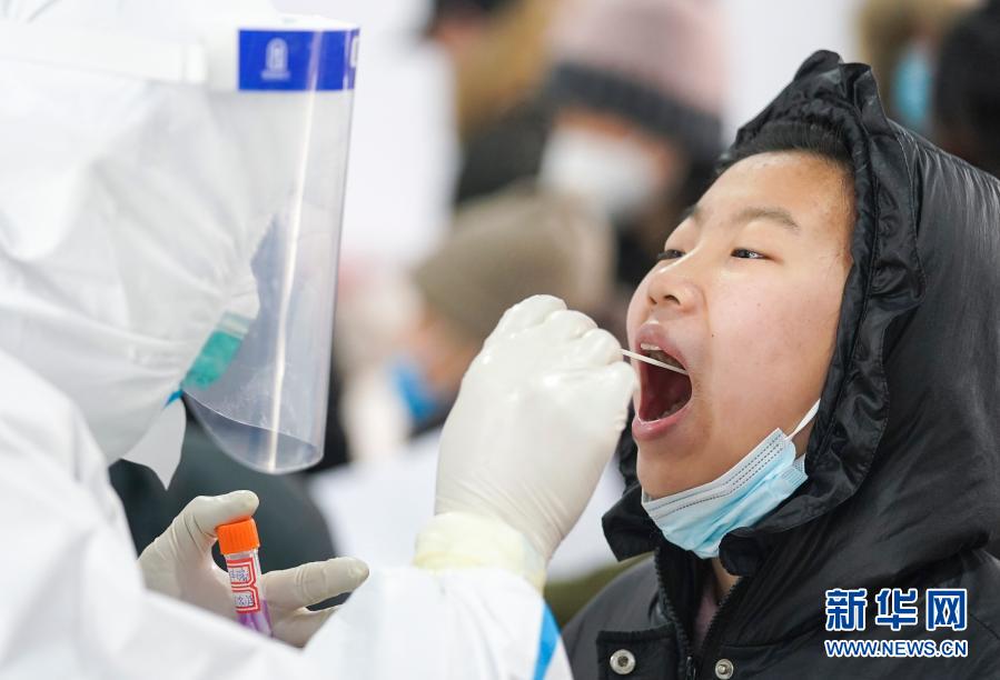 医务人员在吉林省通化市东昌区一核酸检测点进行采样(1月20日摄)。