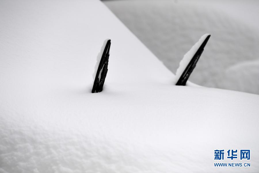 1月23日,在乌鲁木齐市街头,车辆被白雪覆盖。