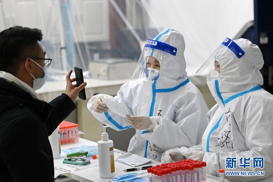 1月23日,在哈尔滨市抚顺社区核酸检测点,医务人员在核对市民身份。新华社记者 王建威 摄