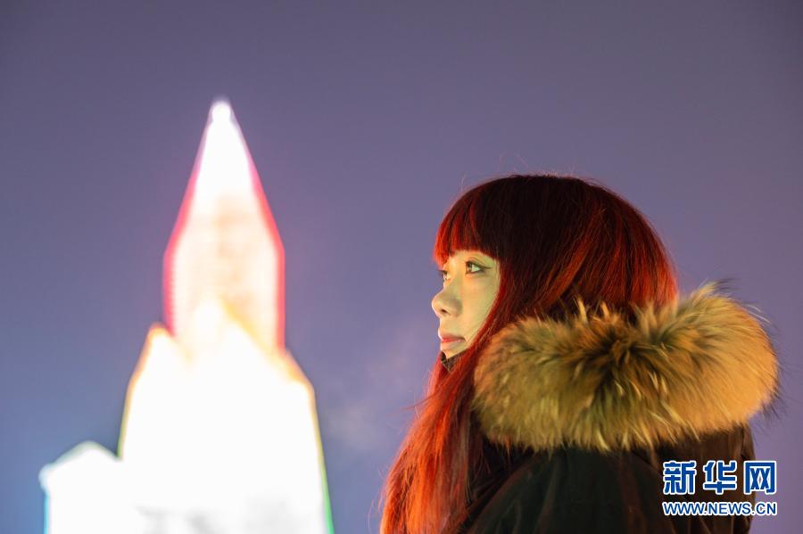 1月1日,刘学文在哈尔滨冰雪大世界游玩。