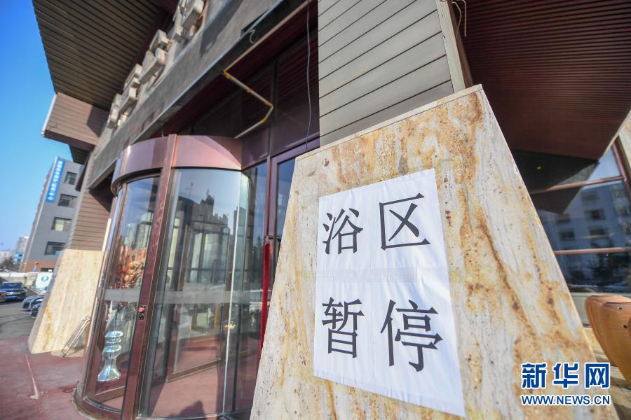 1月24日,位于长春市金川街的一家酒店贴出“浴区暂停”告示。新华社记者 张楠 摄