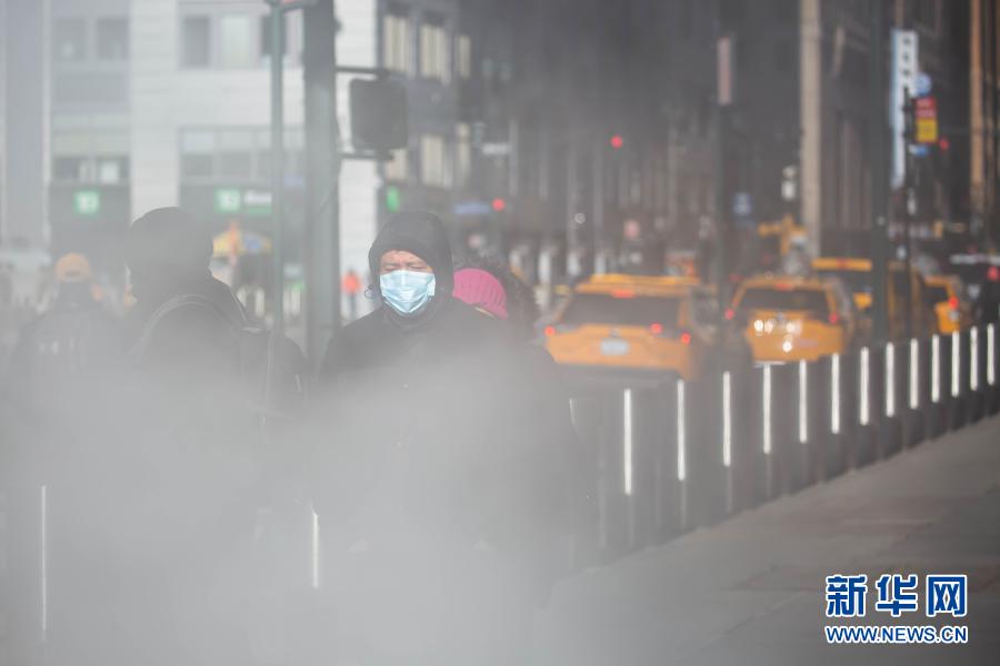 1月23日,在美国纽约,戴口罩的行人走在街头。