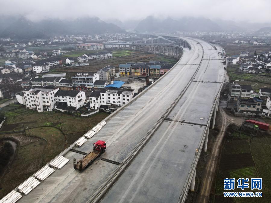 蒲场特大桥位于重遵扩容高速公路蒲场枢纽互通与绥遵高速十字枢纽交叉处,是兰海高速重遵扩容项目14标段控制性工程,全长1.61公里。目前,该大桥主体工程已全部施工完成,附属工程预计今年3月初全部施工完成。新华社发(罗星汉 摄)