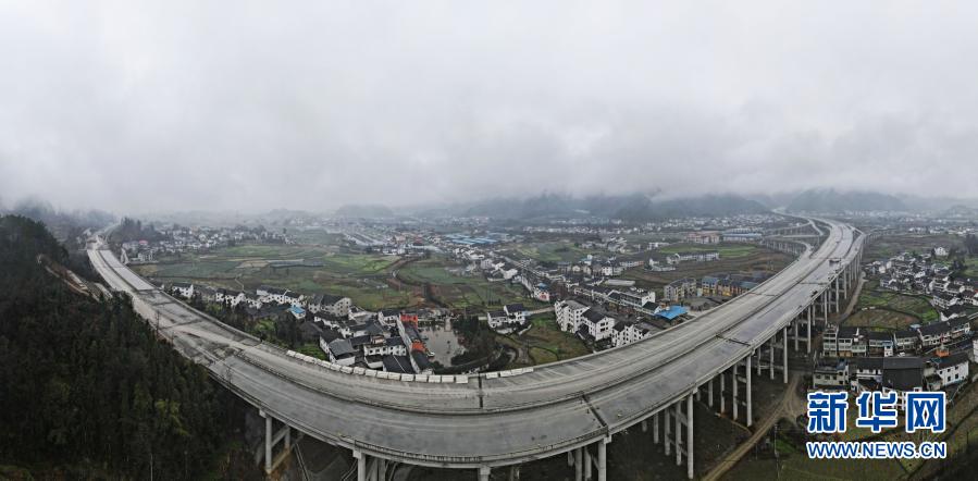 蒲场特大桥位于重遵扩容高速公路蒲场枢纽互通与绥遵高速十字枢纽交叉处,是兰海高速重遵扩容项目14标段控制性工程,全长1.61公里。目前,该大桥主体工程已全部施工完成,附属工程预计今年3月初全部施工完成。新华社发(罗星汉 摄)