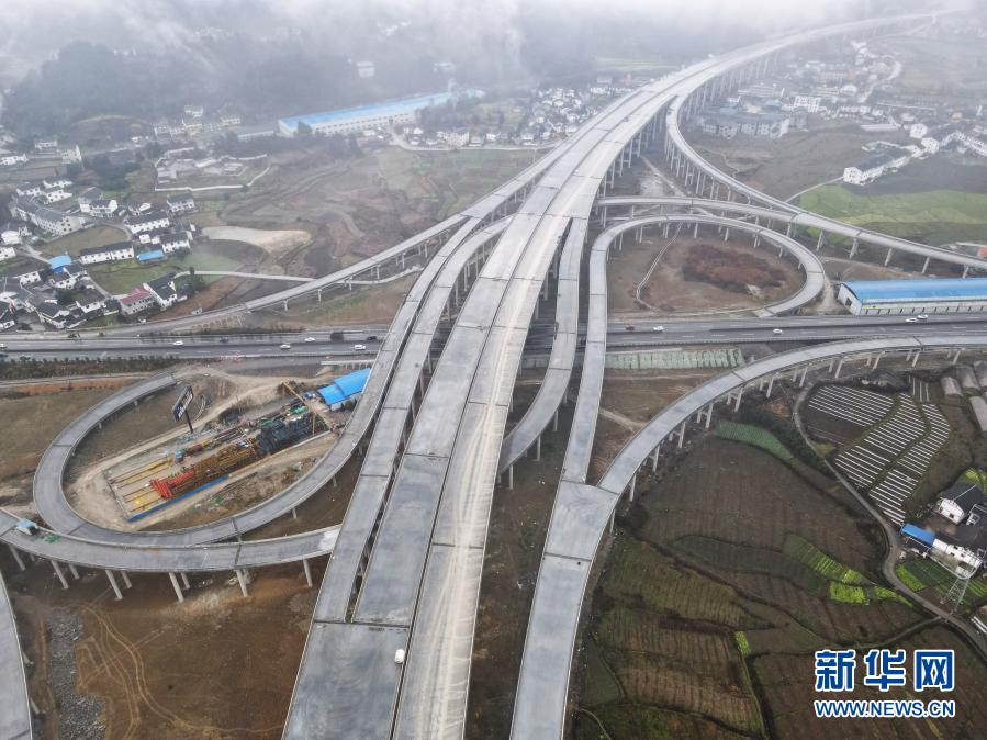 蒲场特大桥位于重遵扩容高速公路蒲场枢纽互通与绥遵高速十字枢纽交叉处,是兰海高速重遵扩容项目14标段控制性工程,全长1.61公里。目前,该大桥主体工程已全部施工完成,附属工程预计今年3月初全部施工完成。新华社发(罗星汉 摄)