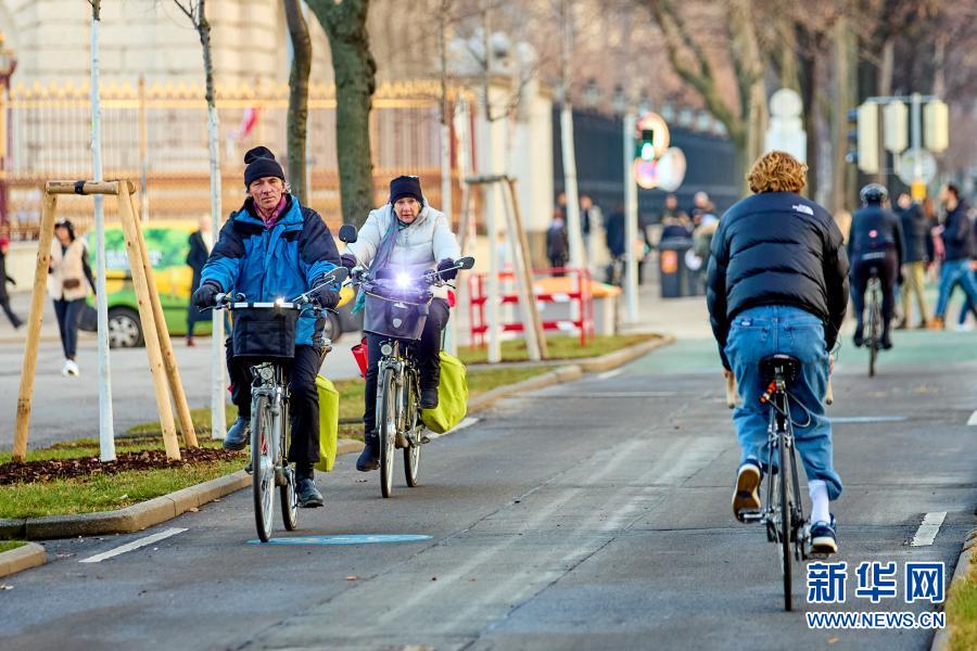 1月22日,人们在奥地利维也纳街头骑行。