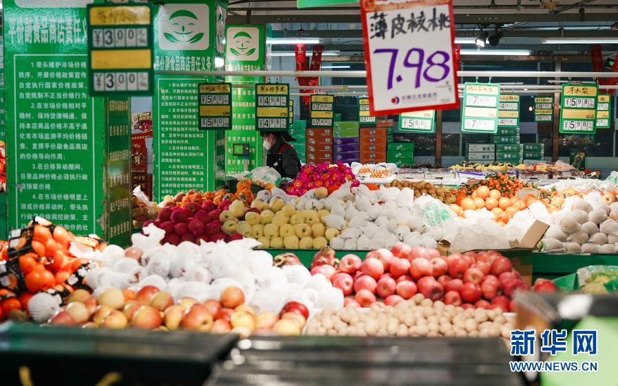 1月24日,在通化市东昌区一家连锁超市,工作人员根据居民购物订单选购商品。